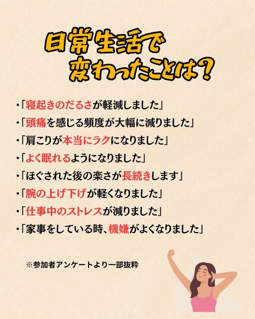 ぜひこのラクな状態をキープして、さらに快適なお身体を作っていきましょう。